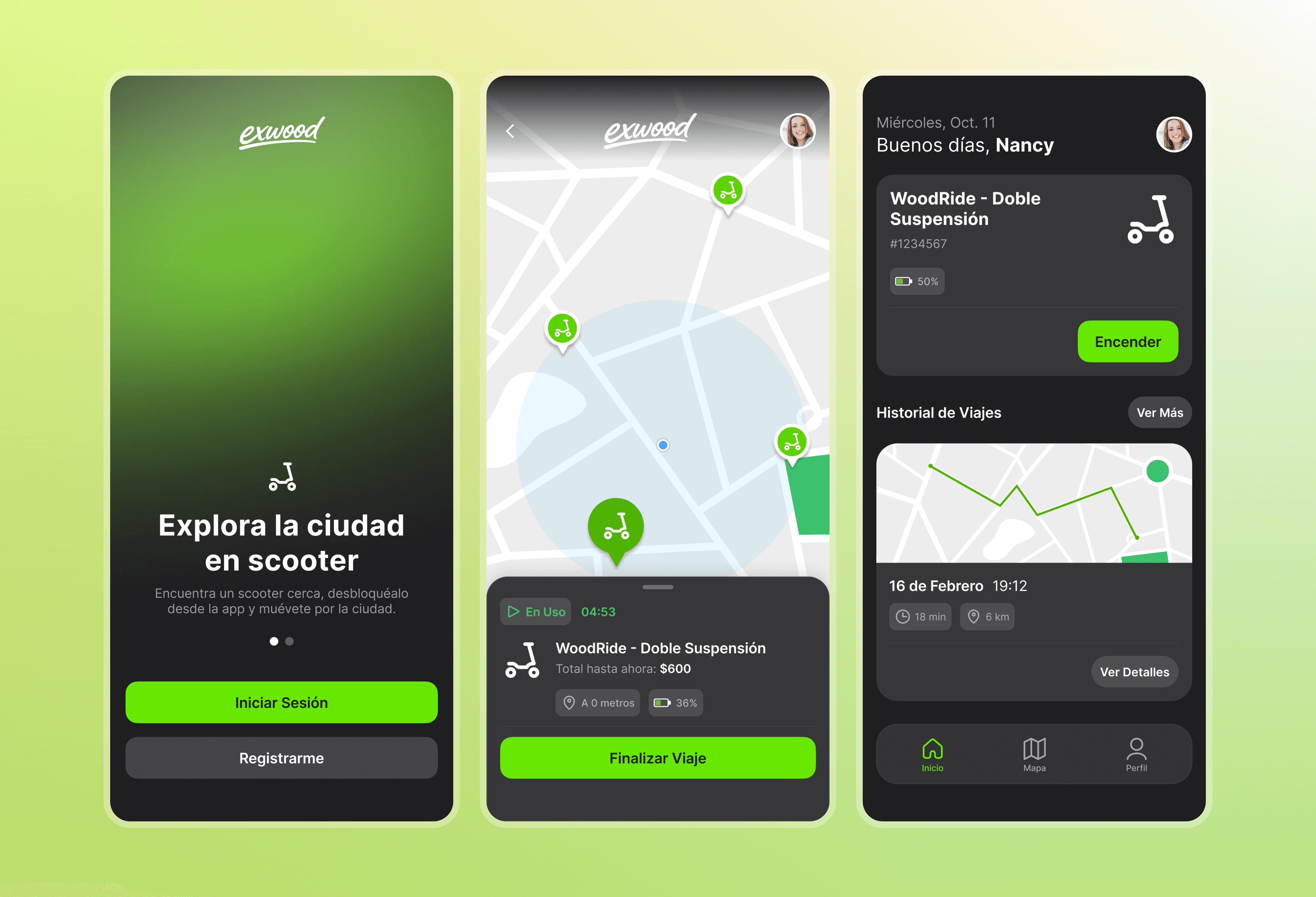 Exwood is a micromobility company focused on electric scooters. I was responsible for designing the MVP of their mobile app, defining the core user experience and essential flows required for users to start using the service.